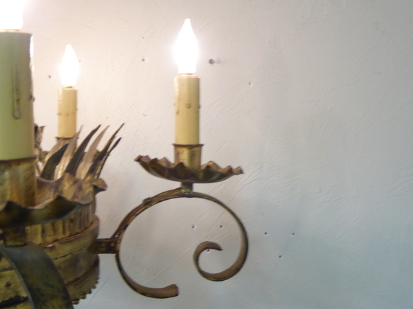 20th Century Italian iron chandelier, use up to 40 watt candelabra bulbs.