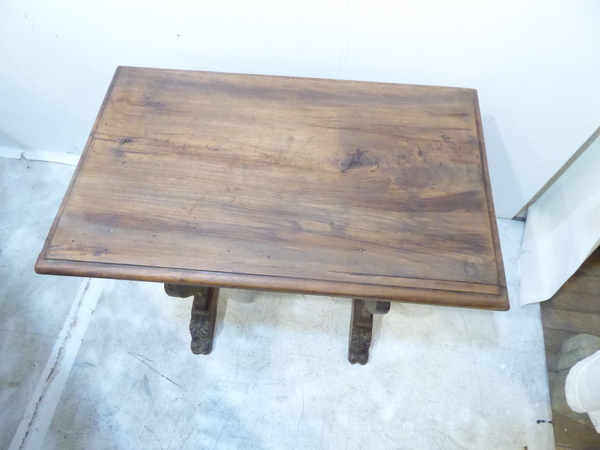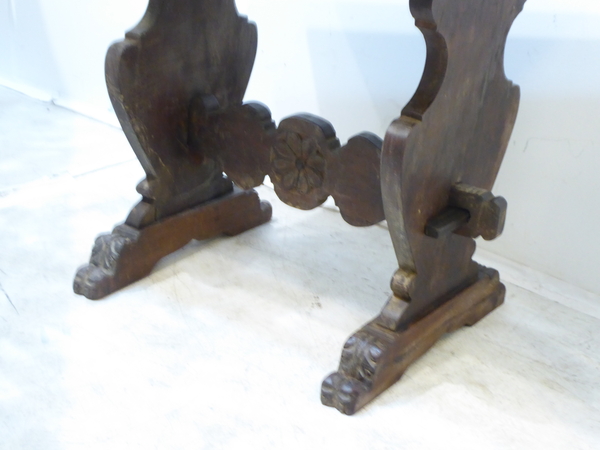 This 19th Century Italian walnut table has carved base.