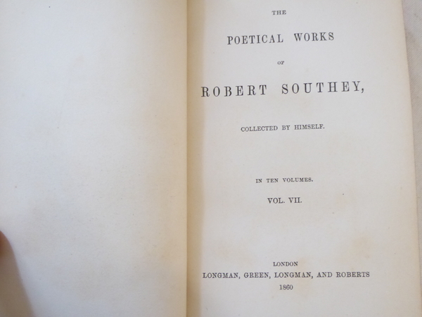 This collection of 10 volumes of leatherbound poetry works are by Robert Southey.