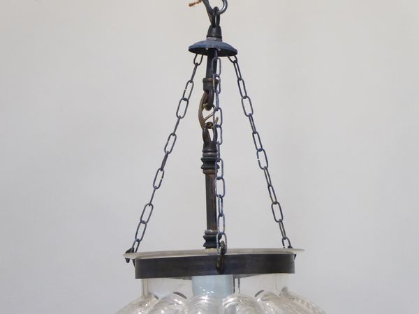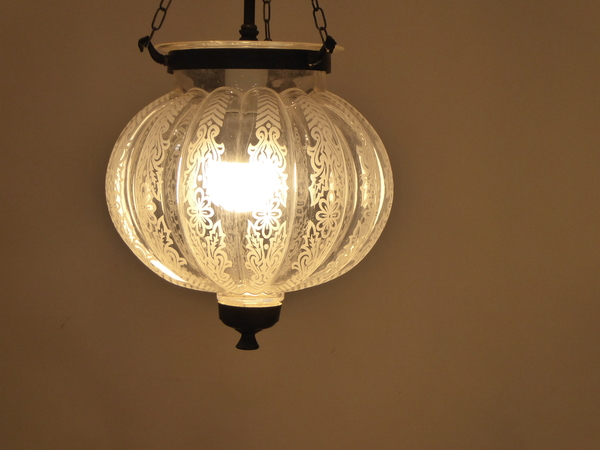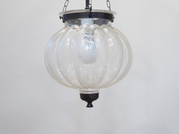 This 20th Century etched glass bell light uses one Edison base bulb up to 100 Watts.