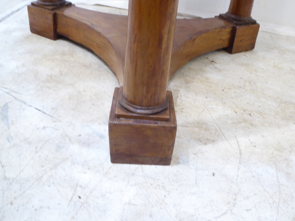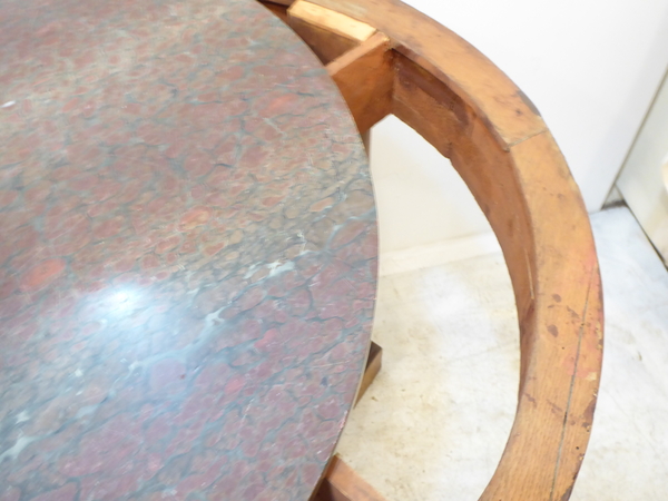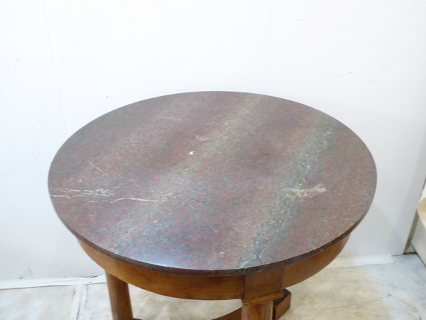 This French 19th century walnut gueridon has a marble top with gray and wine colored tones.