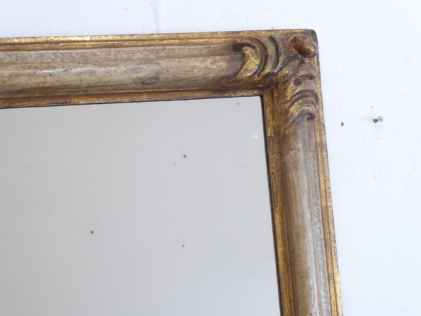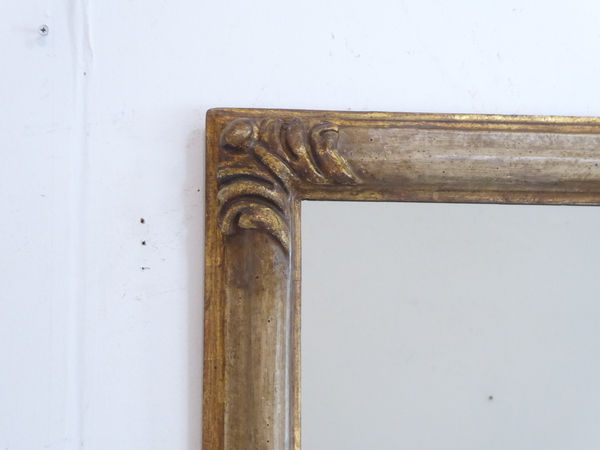 This French Art Nouveau Mirror with carved gilded corners has an ivory tone finish and gilded edges.