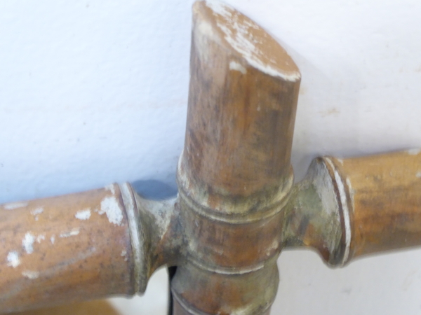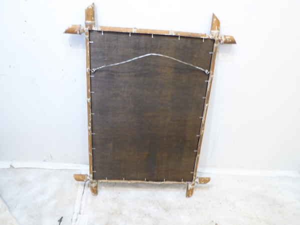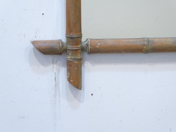 This early 20th Century bamboo mirror has a distressed, weathered finish.