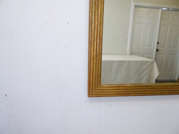 This antique French mirror is made in the directoire style with reeded, giltwood molding.