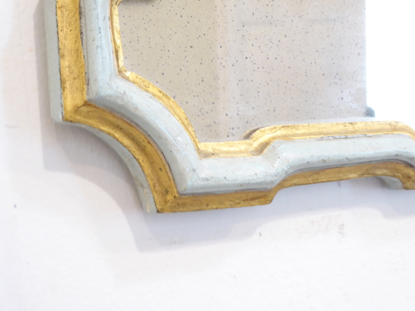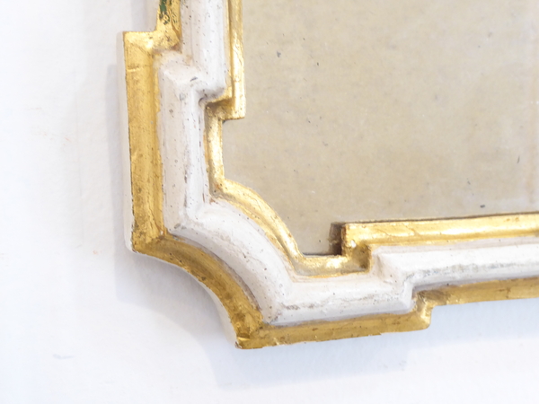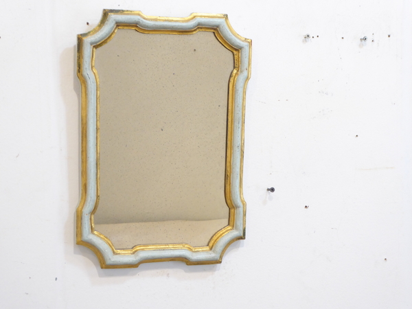 This 20th Century Italian mirror in two versions, one with light green paint and one with white paint, with speckled, distressed mirror, priced for each.