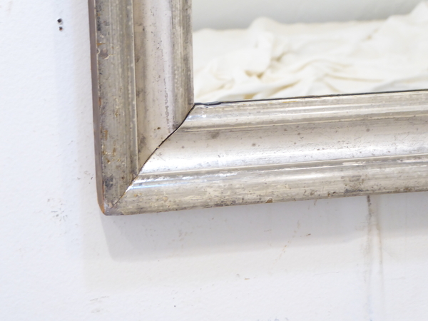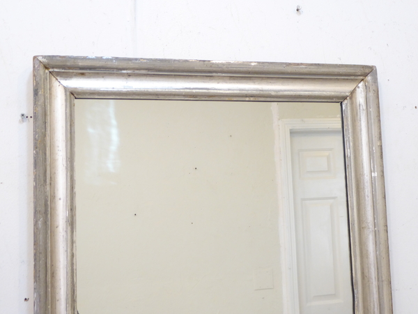 This 19th Century silverleaf mirror has a subdued silver tone overall.
