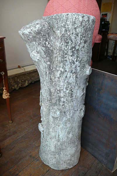This concrete planter has been carefully formed to look like a tree trunk, with peeling bark.