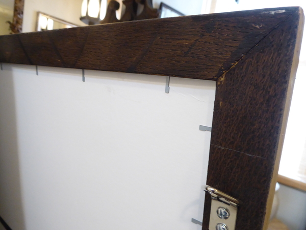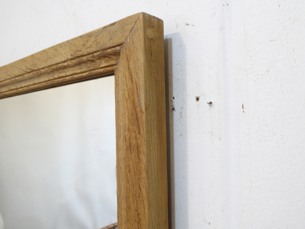 This 20th Century weathered beechwood mirror hangs vertically, but can be hung horizontally. There are two, but sell individually.