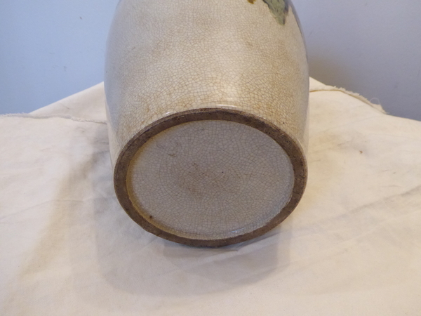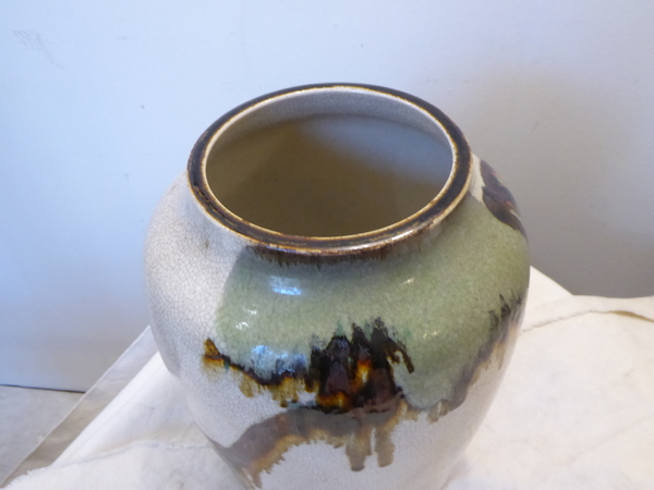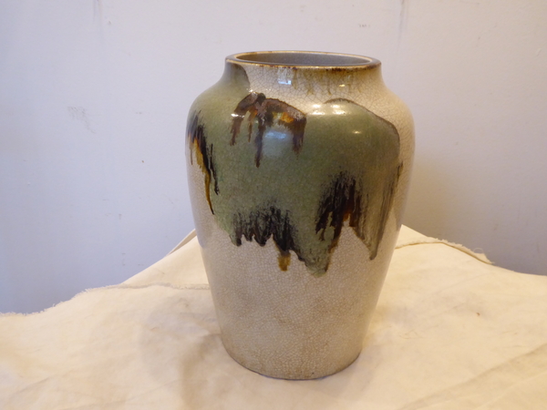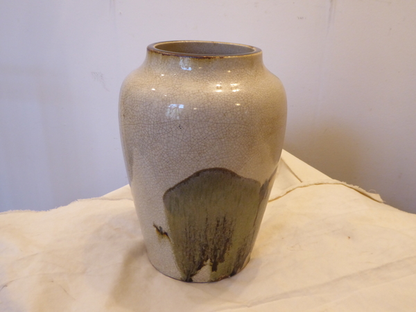 Japanese crackle gaze ceramic vase with freely brushed design.