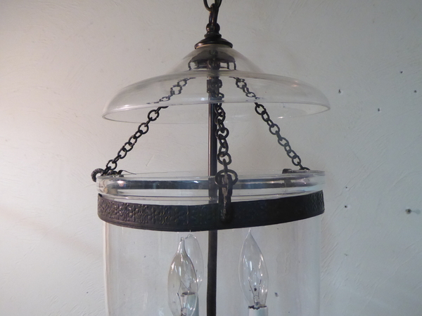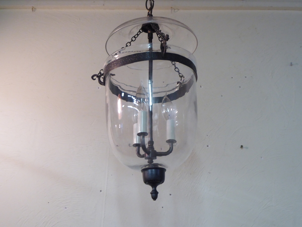 20th Century bell light with darkened brass fittings, use up to 60 watt candelabra bulbs.