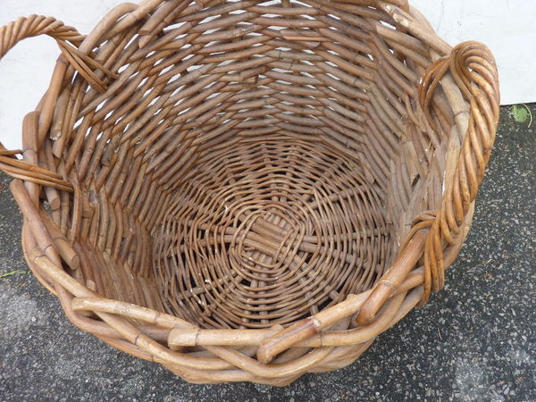 20th Century large rattan basket with handles, inner dimensions are 24”H x 22”Di.