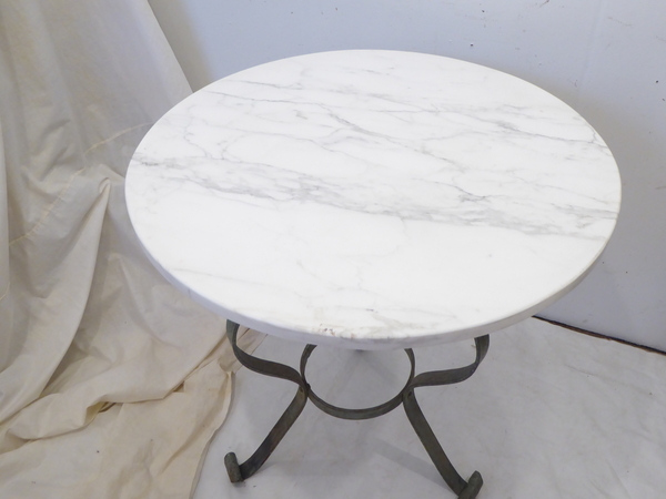 20th Century Iron cafe table with verdegris finish with white marble top.