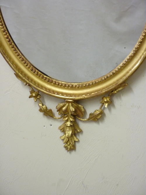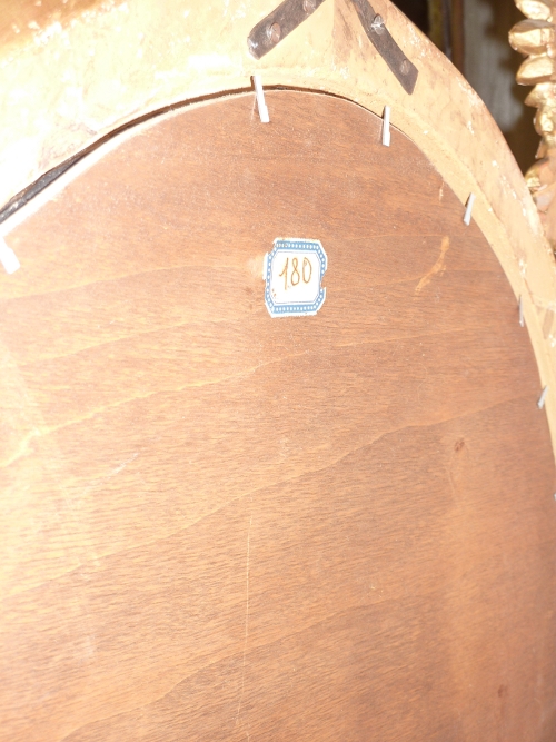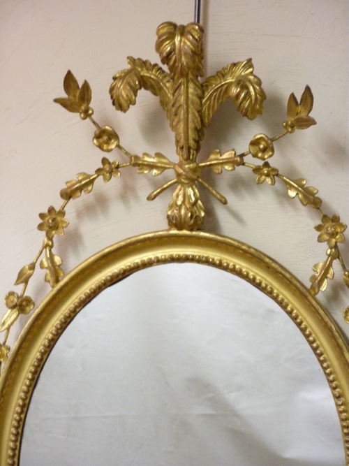 This early 20th century carved giltwood mirror is Italian made in the English style with a Prince of Wales style crown.