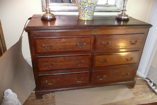 This modern mirror designed by Neal Beckerman, has a deep set back molding, and a slightly textured, hand rubbed, grey white finish. It has a distressed mirror, with haze and dark specs. A pair or alternate sizes, finishes is available.
