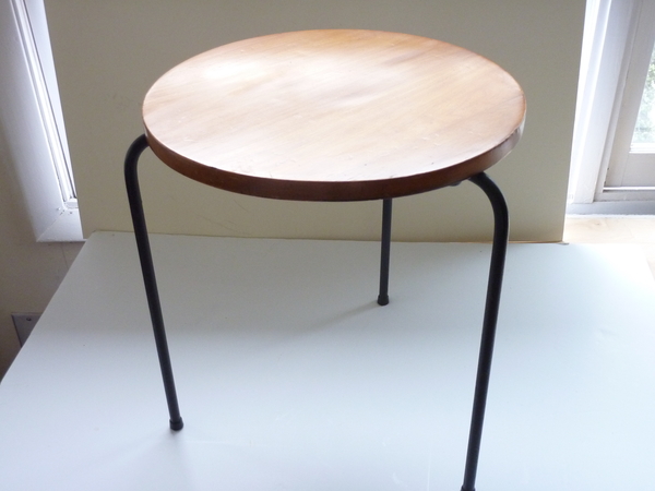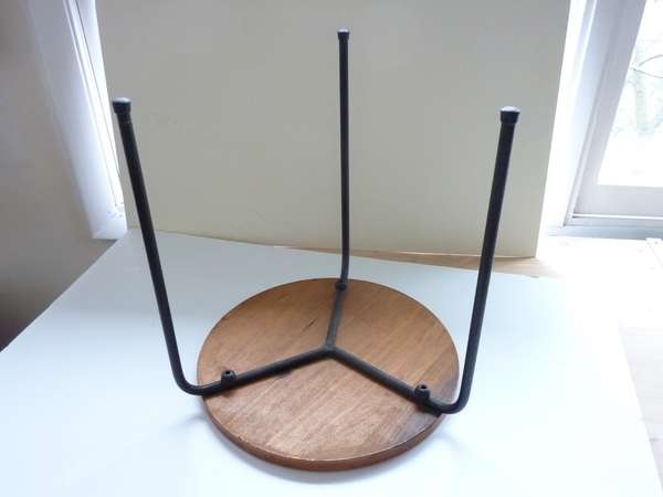 Mid-century modern three leg stool, with well wrought iron legs, joined